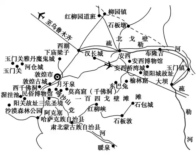 甘肃省敦煌地区旅游景点分布图