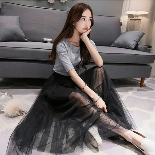 韩国东大门高腰网纱裙半身长裙夏蓬蓬裙春款仙女百褶裙沙滩打底裙