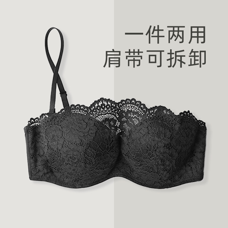 夏季蕾丝女士内衣无钢圈薄款抹胸式文胸聚拢调整美背细肩带防走光