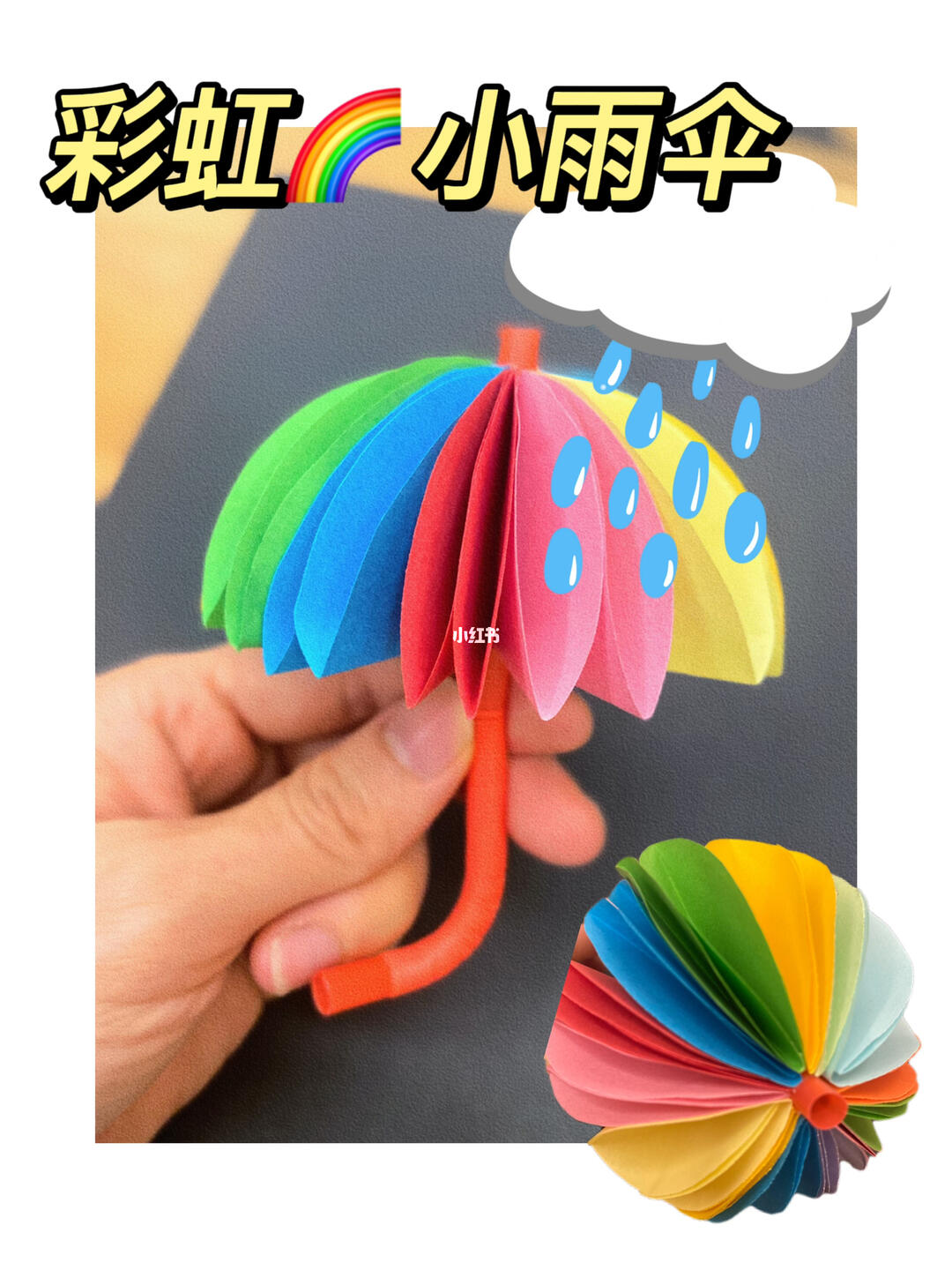 趣味手工用彩纸做彩虹小雨伞74超简单