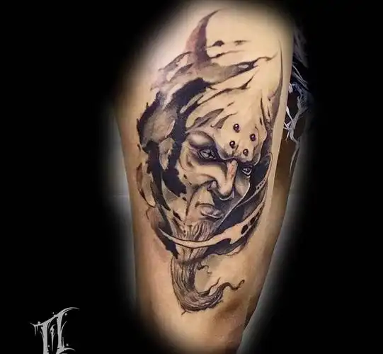 后颈黑灰撒旦纹身图案