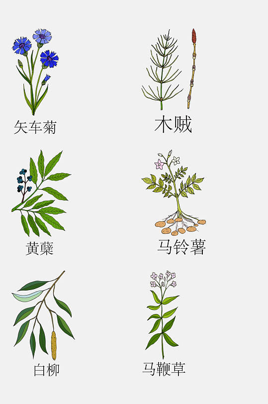 大气手绘线描中草药草本植物免抠素材