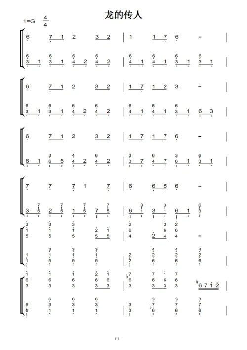 龙的传人双手简谱预览1-钢琴谱文件(五线谱,双手简谱,数字谱,midi,pdf