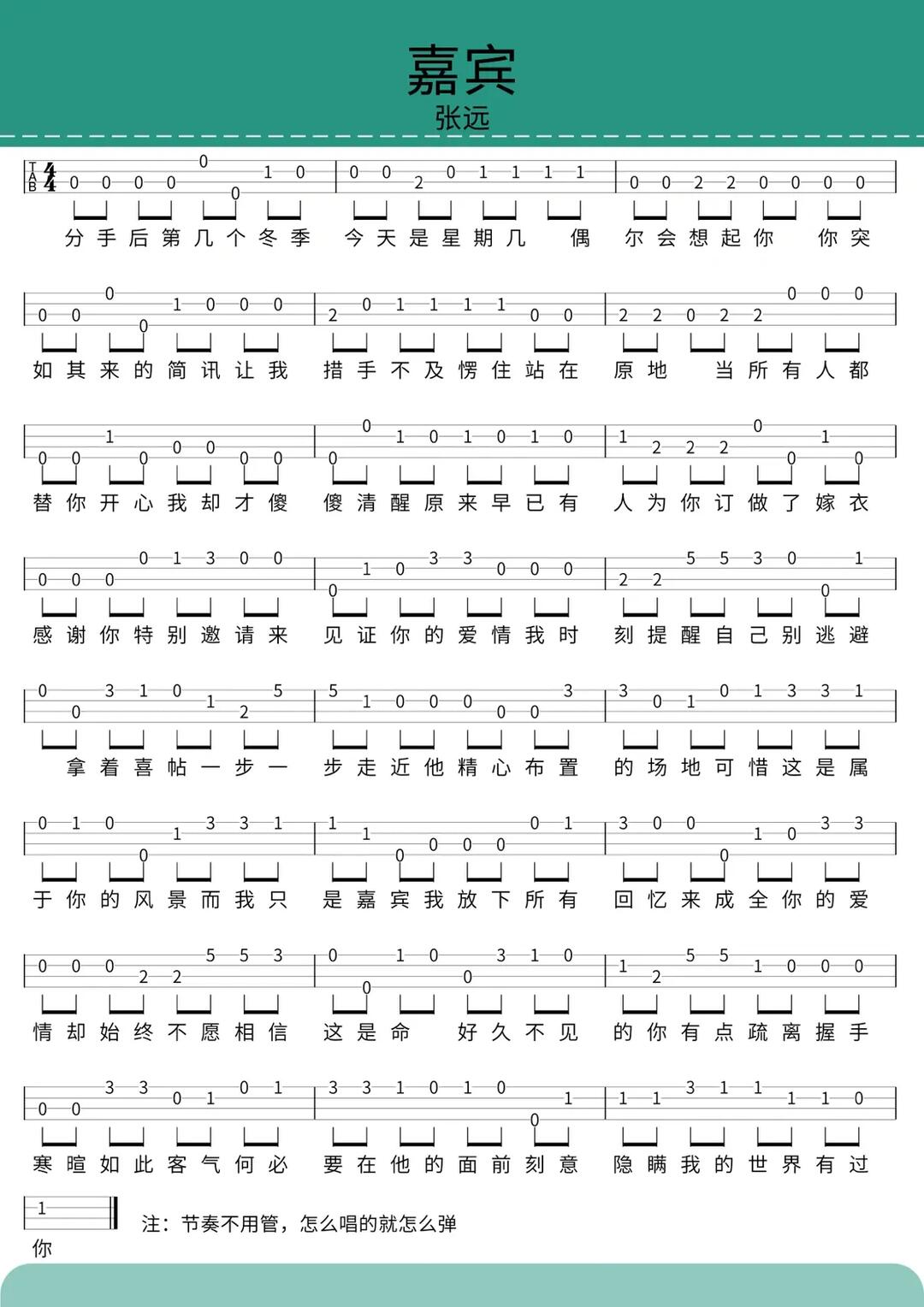 嘉宾歌词简谱第1页