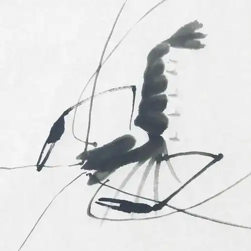 王成国画水墨虾《寻源探底常求索》:神韵高雅,姿态灵动,肢体玉洁透明