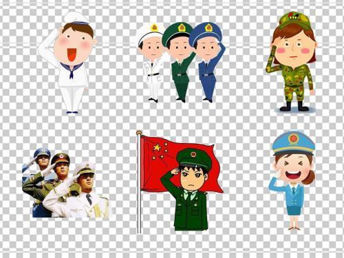 建军节海陆空三军敬礼卡通插画