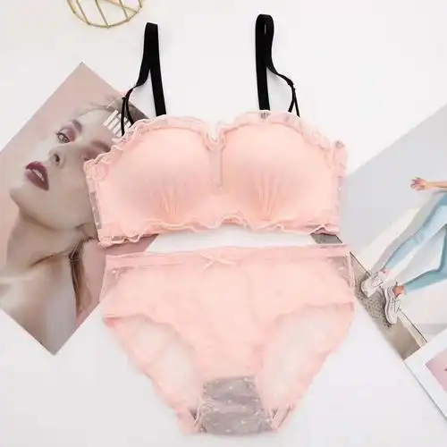 内衣套装女性感蕾丝防走光文胸上薄下厚小胸聚拢抹胸无钢圈胸罩夏