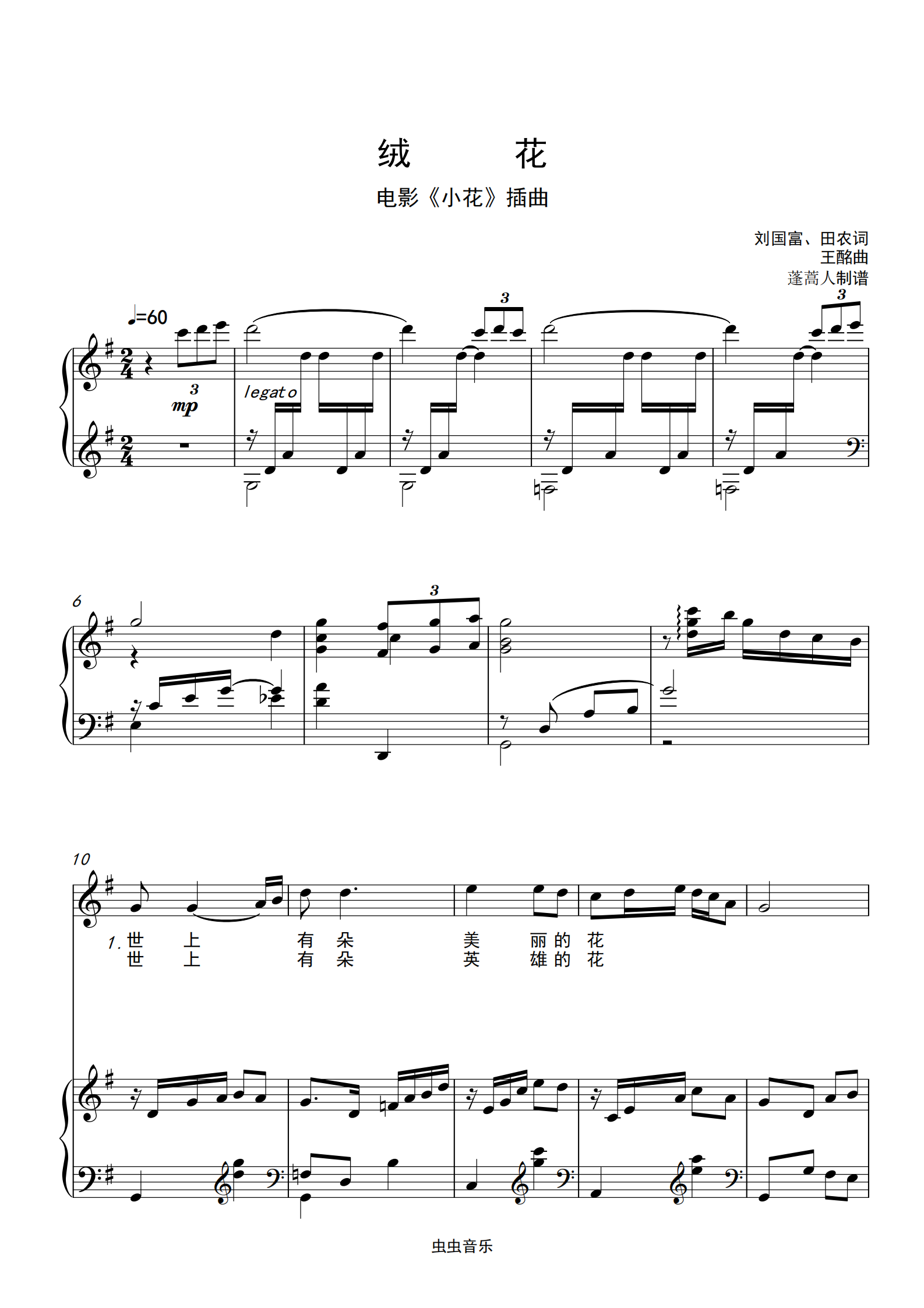 绒花g调钢琴谱-蓬蒿人-虫虫钢琴
