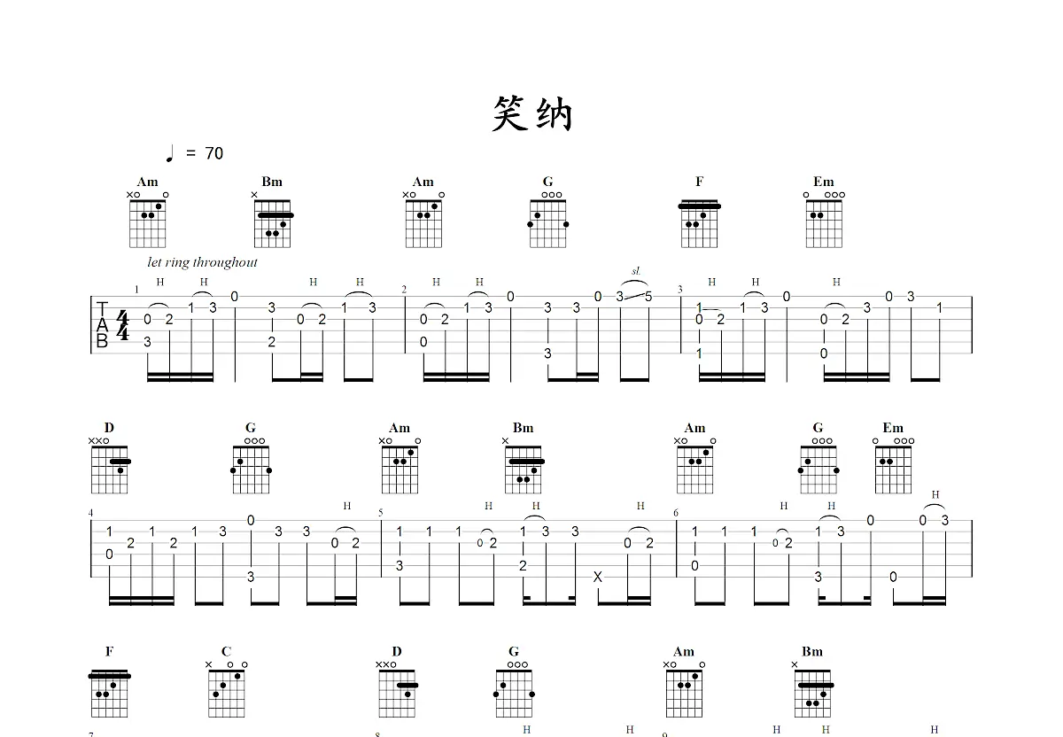 笑纳吉他谱花僮g调弹唱谱抖音热门歌曲高清完整六线谱图片