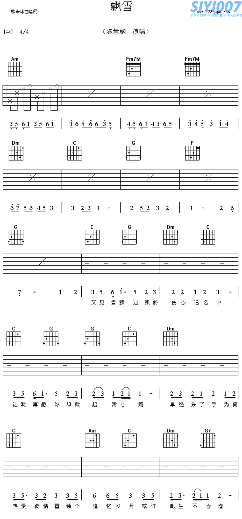 飘雪吉他谱_陈慧娴_c调弹唱60%原版 - 吉他世界