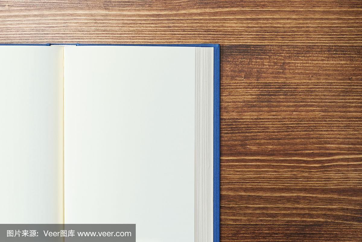 空白的杂志页面.工作空间的折叠杂志模型在桌子上.