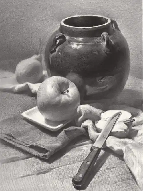 素描单体陶罐步骤讲解