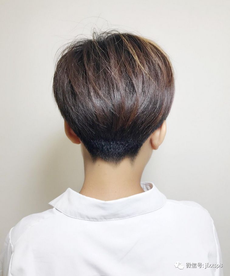 剃后脖短发顶部头发打造出蓬松的效果,一点都不厚重,呈现出自然的弧线