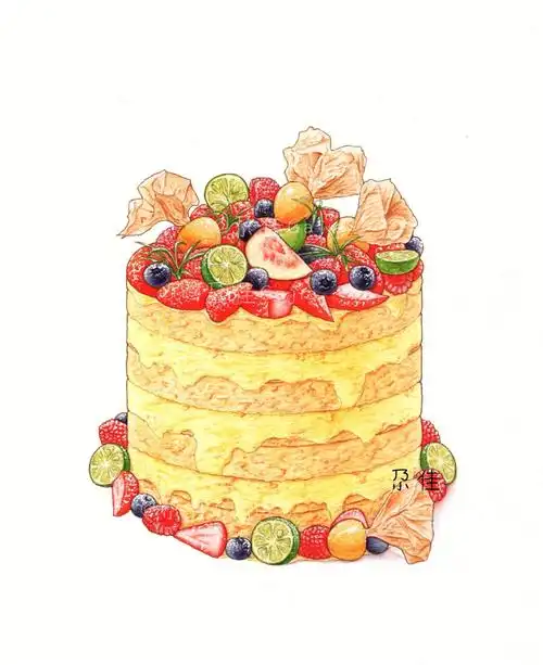 甜蜜很简单,水彩笔下的诱人的草莓蛋糕手绘