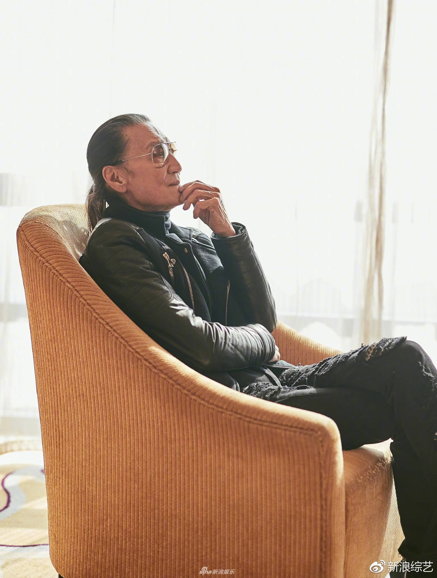 组图:81岁谢贤扎辫子带墨镜潮范儿十足 一身黑look身材超有型