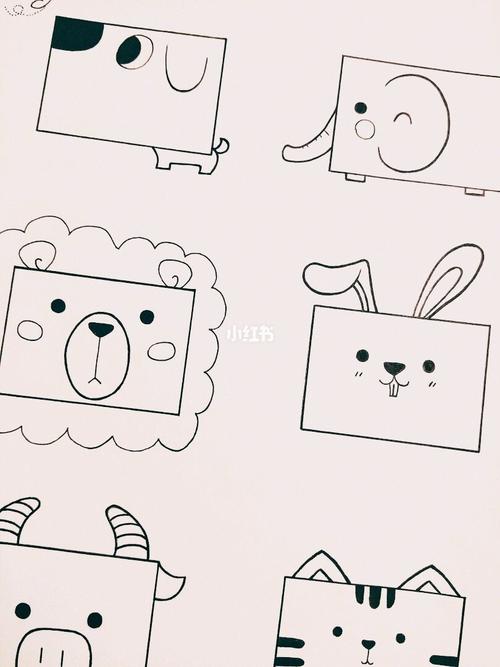用两种不同的长方形画出不一样的可爱 的小动物简笔画简单又有趣很