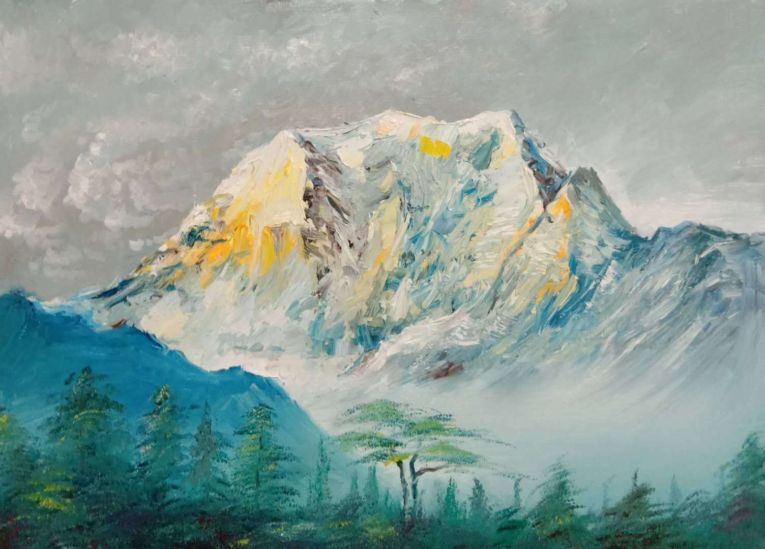 油画雪山#雪域之巅*#质感油画 #云南丽江油画工作室 - 抖音