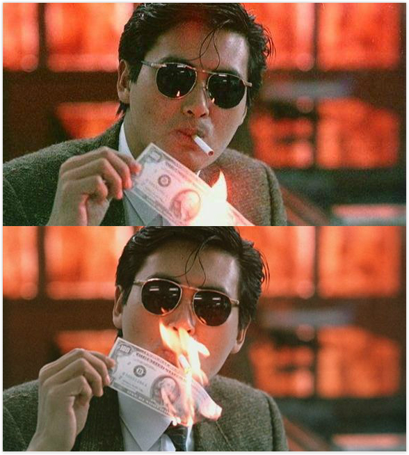 周润发拍摄的《在剧中,他拿着美钞点烟,把"小马哥"演出了真实的感觉