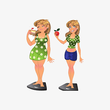 矢量手绘胖瘦女孩对比png素材透明免抠图片-卡通手绘-三元素3png.com
