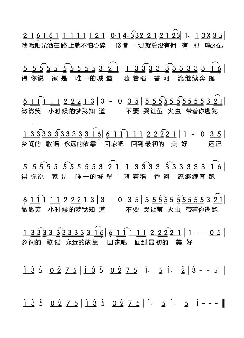 稻香简谱_稻香二字歌谱曲谱_二字歌谱_818简谱曲谱网