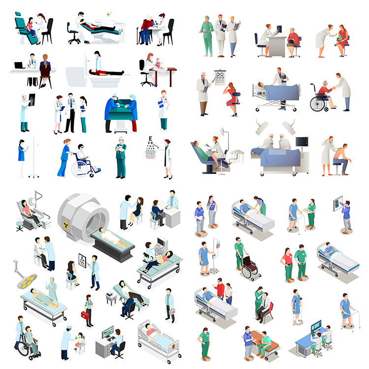 扁平化医院场景人物 卡通医疗治疗康复场景 ai格式矢量设计素材