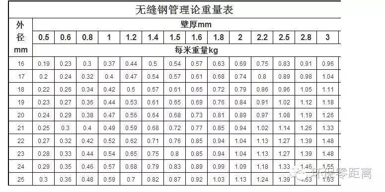 无缝钢管理论重量表及常用钢管计算法