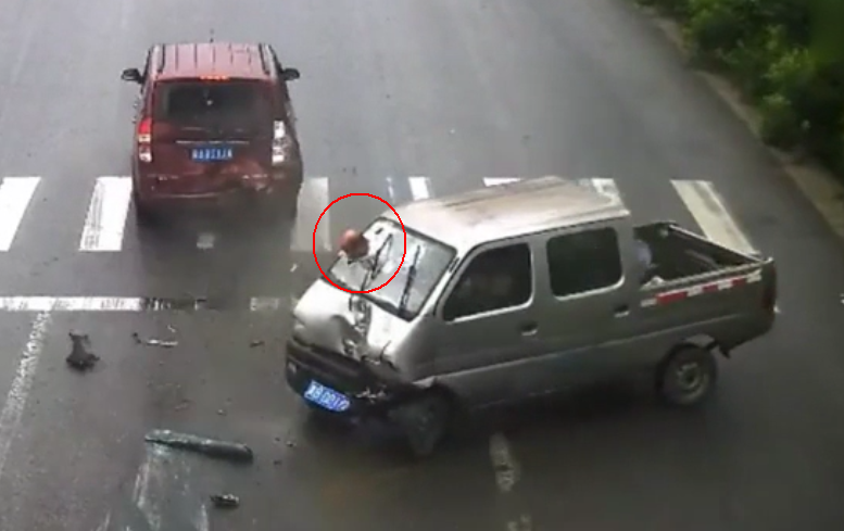 惊悚人头撞出挡风玻璃因未系安全带被瞬间撞出