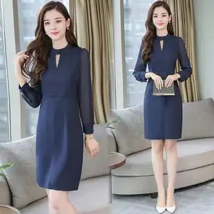 职业装连衣裙女长袖时尚气质工装通勤简约黑色正装工作服显瘦裙子