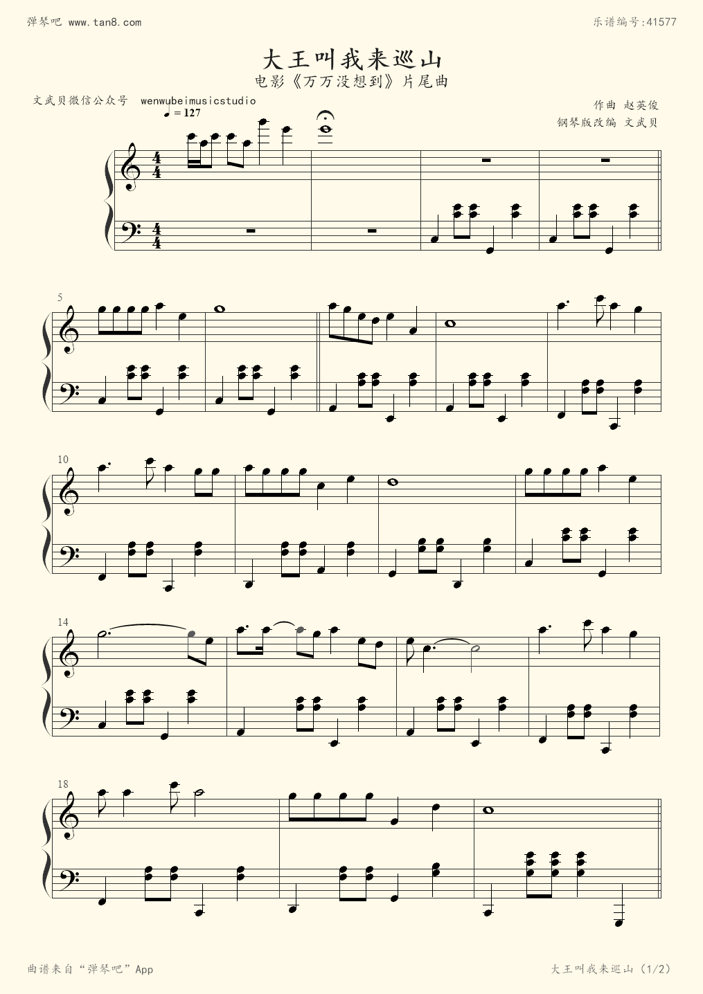 大王叫我来巡山-万万没想到ed双手简谱预览1-钢琴谱文件(五线谱,双手