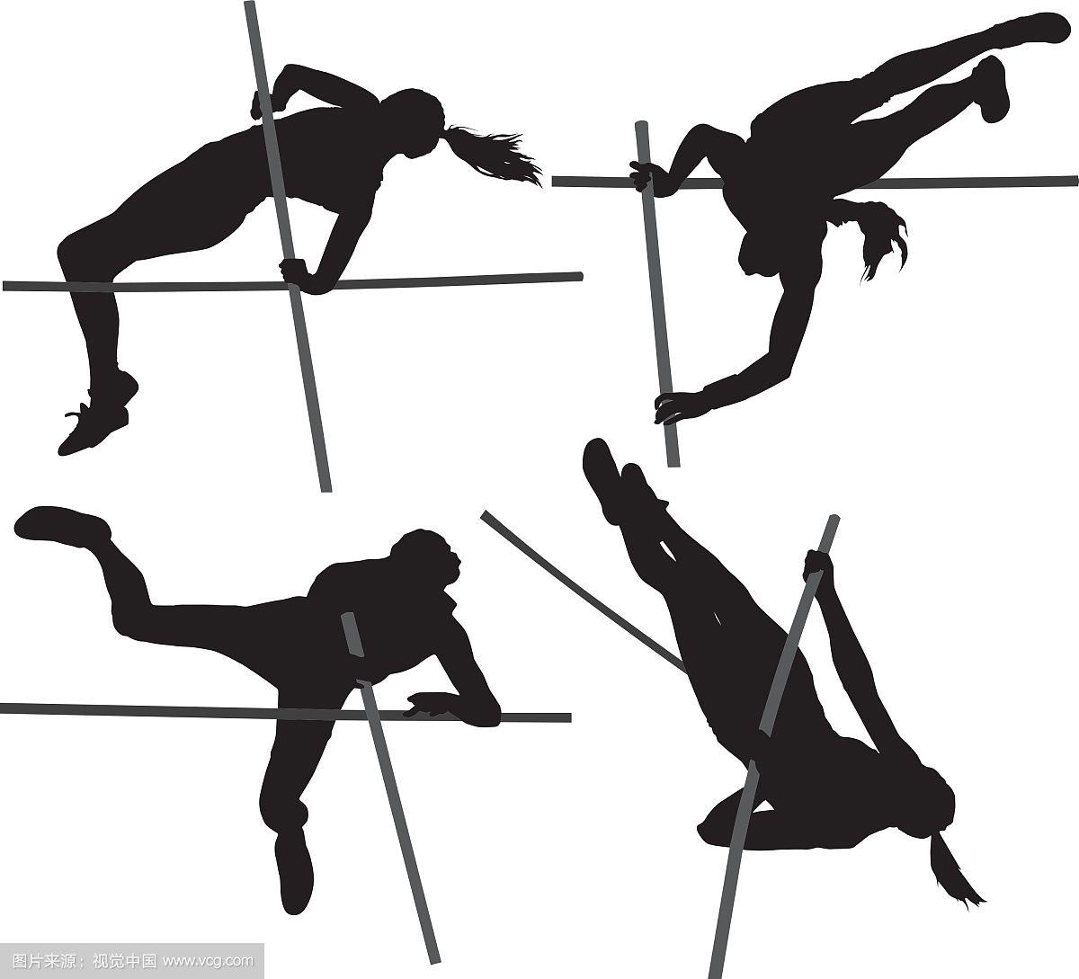 手绘彩色撑杆跳技术分解女运动员