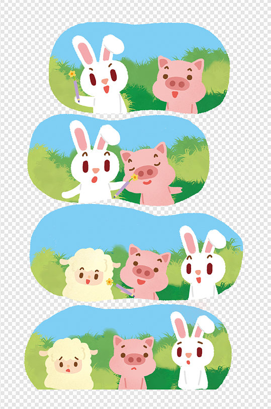 卡通手绘故事插画动物羊兔猪聊天免扣元素