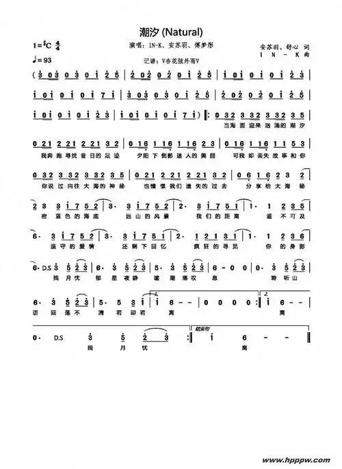 《潮汐 natural》简谱 in-k/安苏羽/傅梦彤