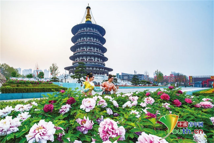 春日牡丹簇拥下的洛阳城