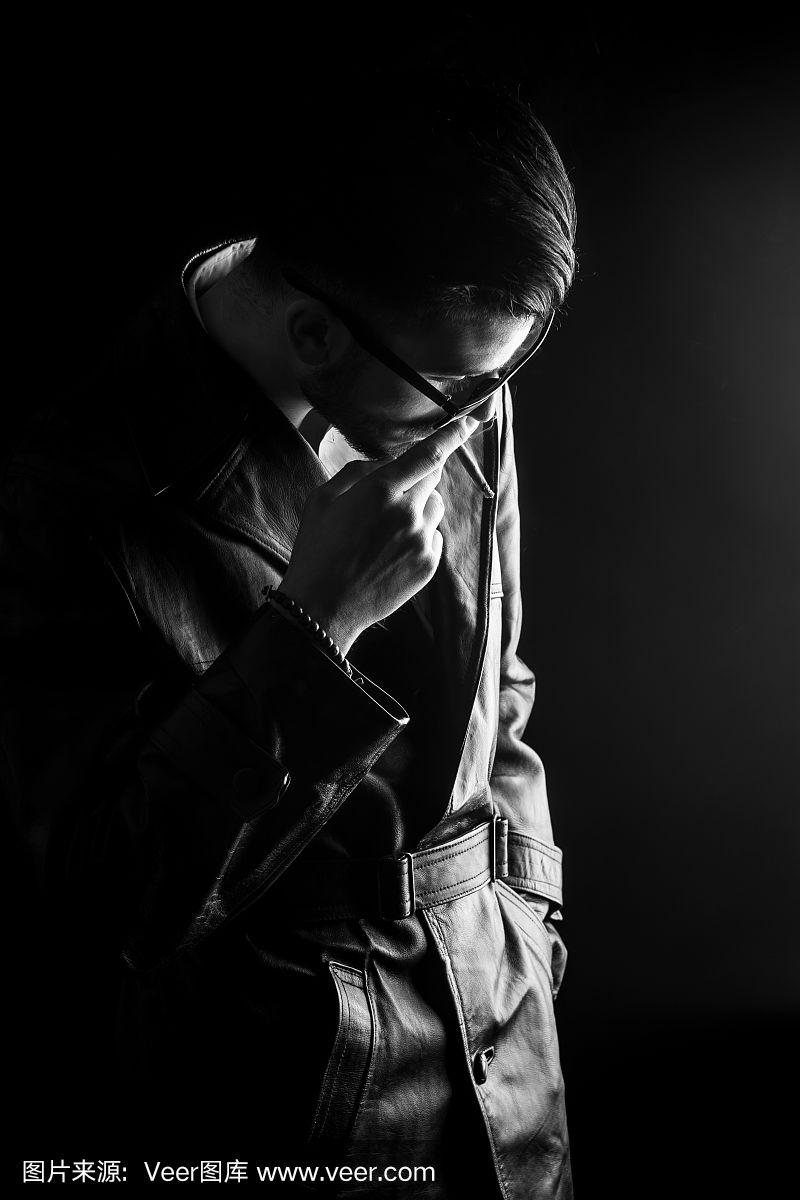 时尚男子低头抽烟