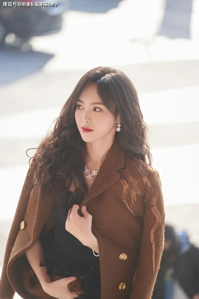 唐嫣小羊毛卷也太美了一身黑内搭复古高领毛衣牛仔裤好甜蜜啊