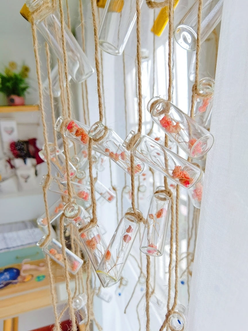 把空瓶一个个串联起来!风铃就制作完成啦!
