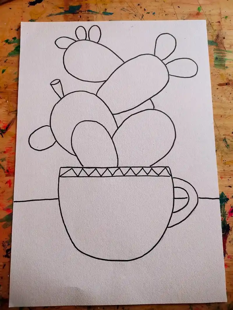爱画画的小朋友 线描画《一盆仙人掌9191》 - 抖音