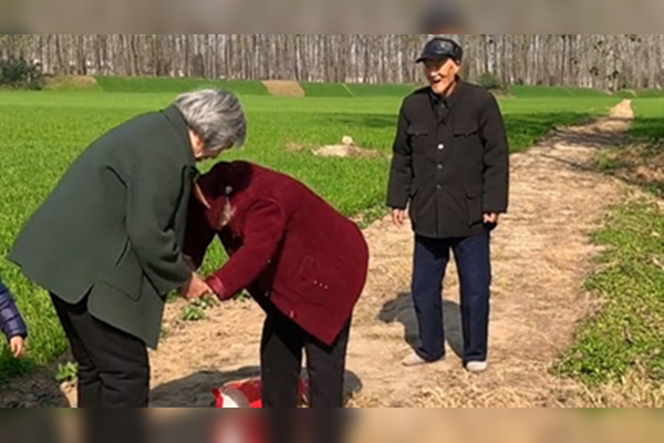 令人泪目老人回老家上坟偶遇多年不见的亲戚欣喜不已