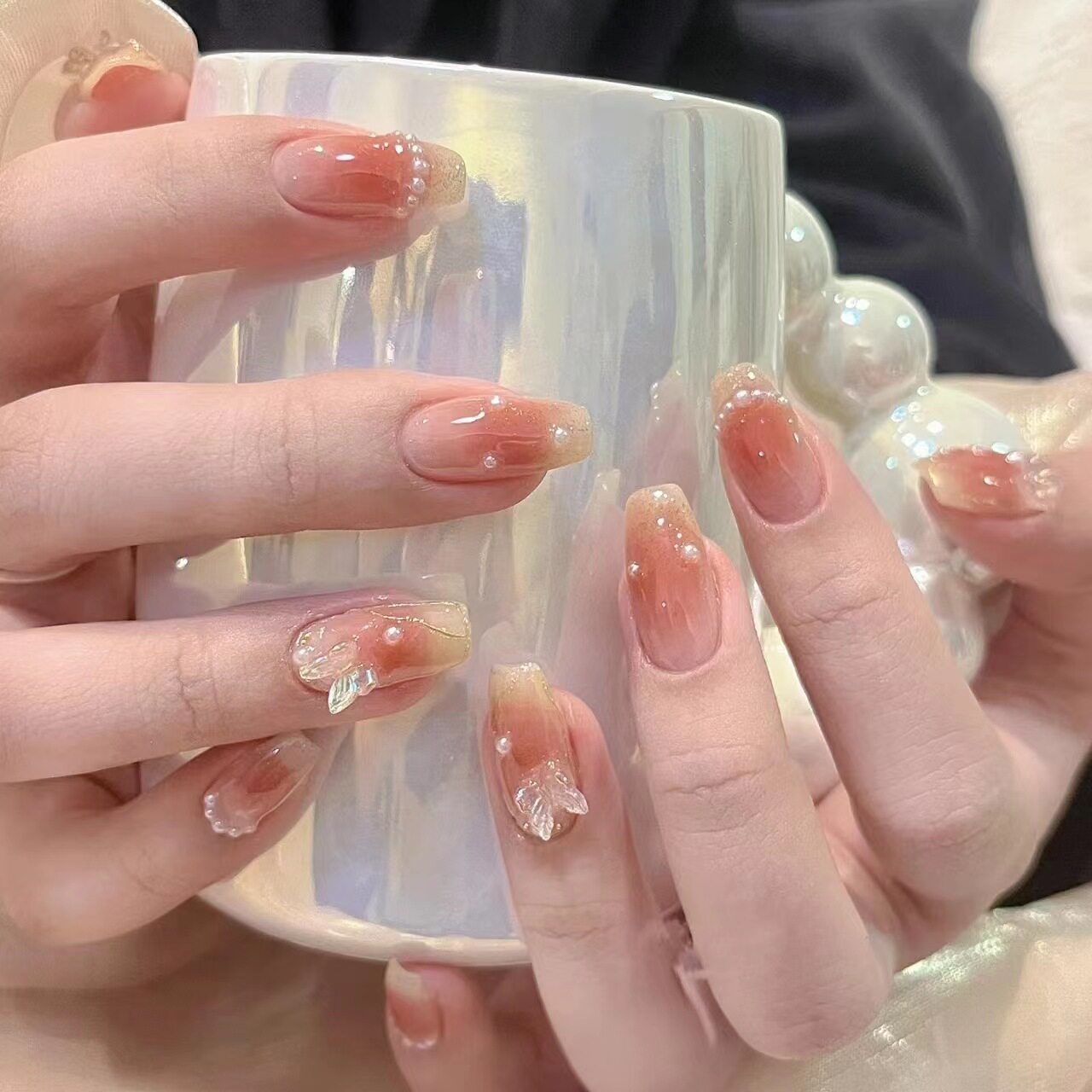 学生党穿戴甲美甲成品甲片蝶舞翩翩梯形长款腮红显白高级感可拆卸
