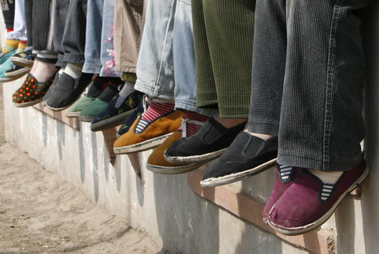 图文:农村孩子穿着自己家做的布鞋
