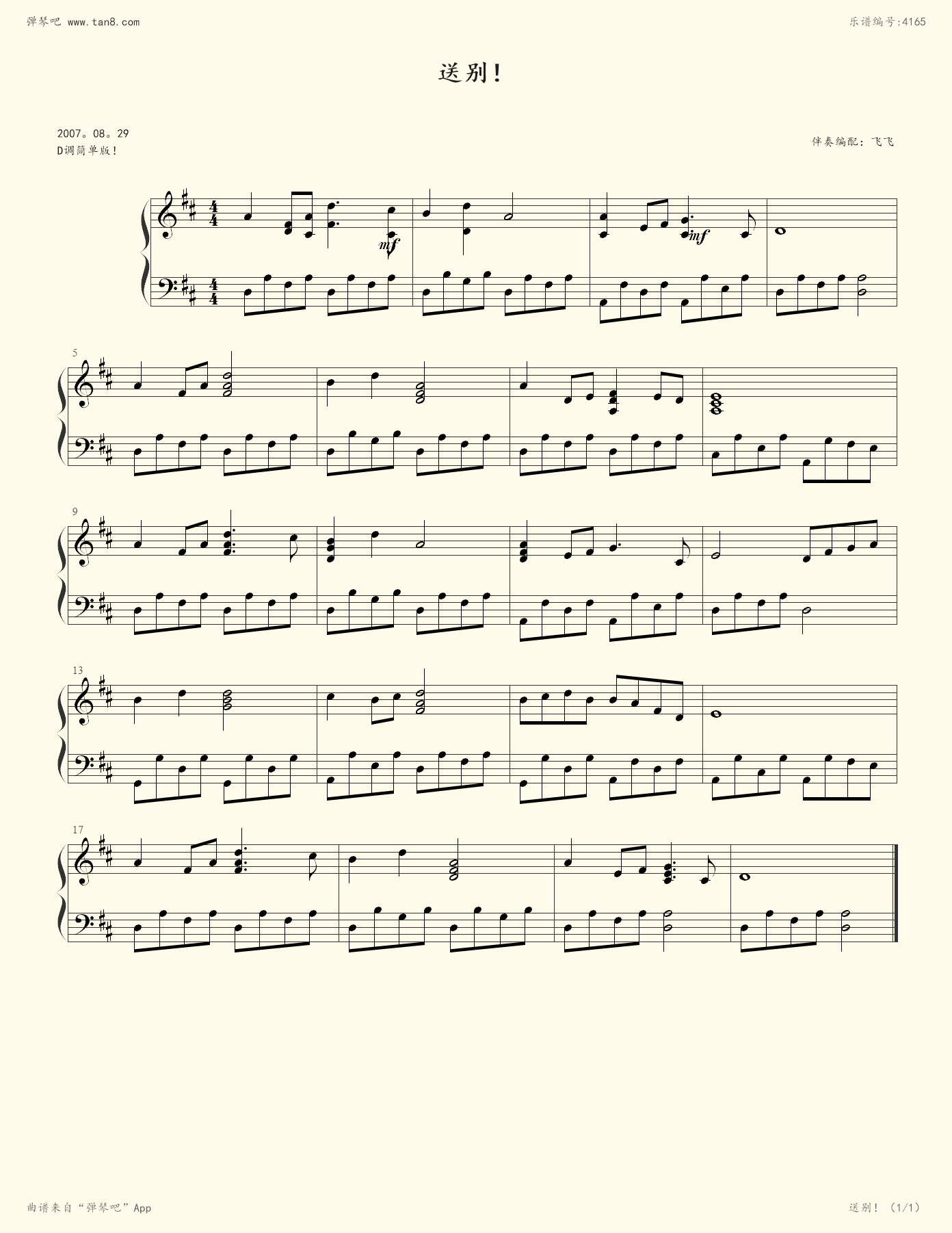 钢琴谱 - 送别