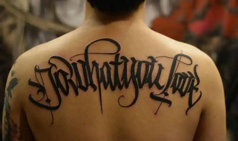 哥特体半背字母纹身图片背部花体字哥特体纹身图案