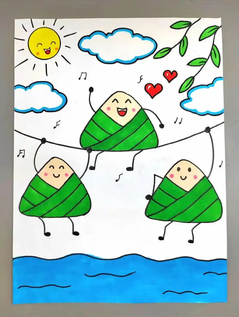 幼儿园儿童画端午节粽子赛龙舟主题创意绘画.#创作灵感 #小y - 抖音