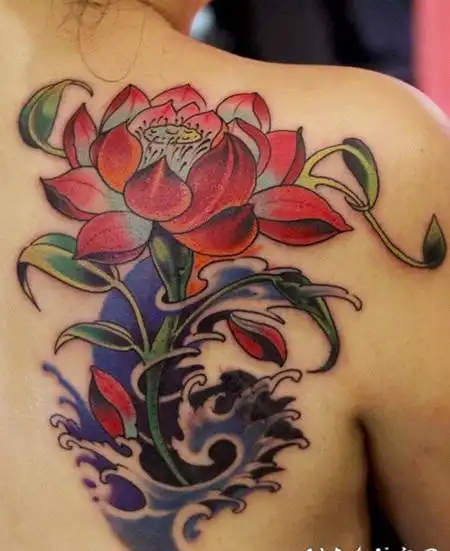 荷花纹身图片_背部纹身图案