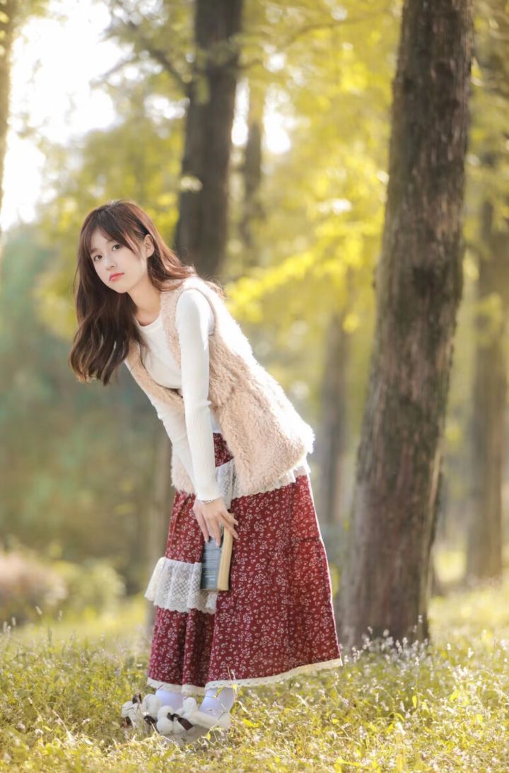 文艺秋叶人像写真,那么满是落叶的地面或楼梯就很不错,不用太纠结姿势