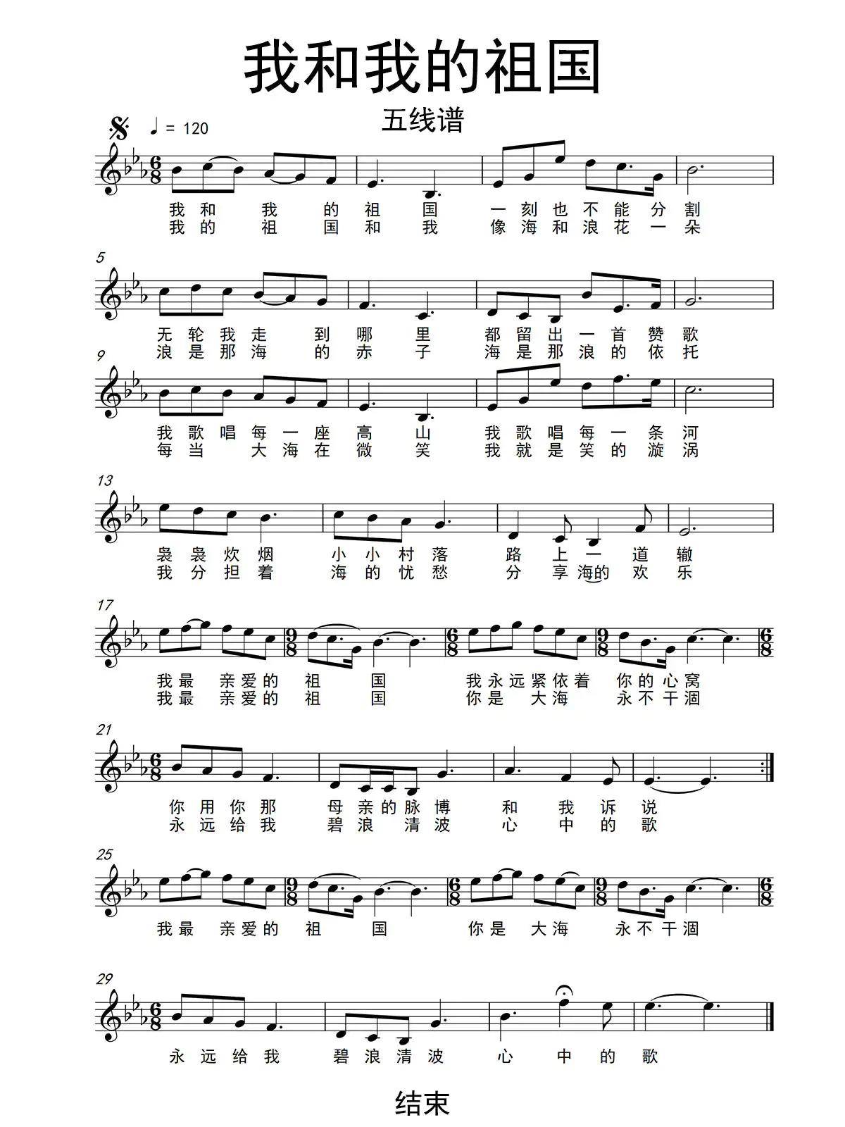 我和我的祖国五线谱乐谱
