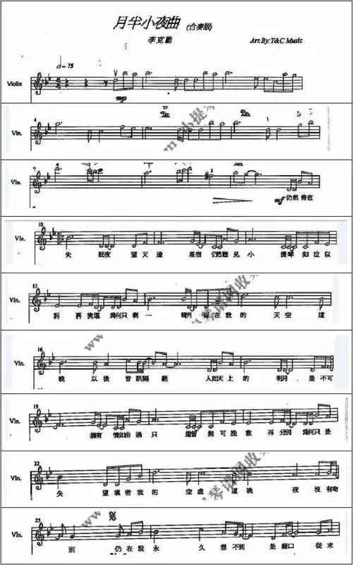 分享—《月半小夜曲》小提琴谱 《月半小夜曲》是香港歌手李克勤演唱