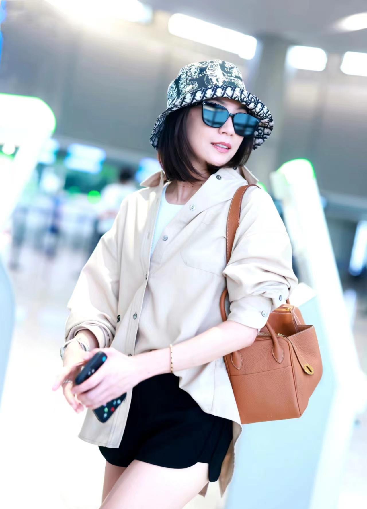 贾静雯现身机场,身穿燕麦色衬衫搭配黑色短裤,时尚又显瘦!