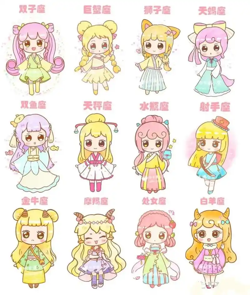 十二星座简笔画漫画简笔画女孩图片大全 12星座最萌简笔画十二星座(3)