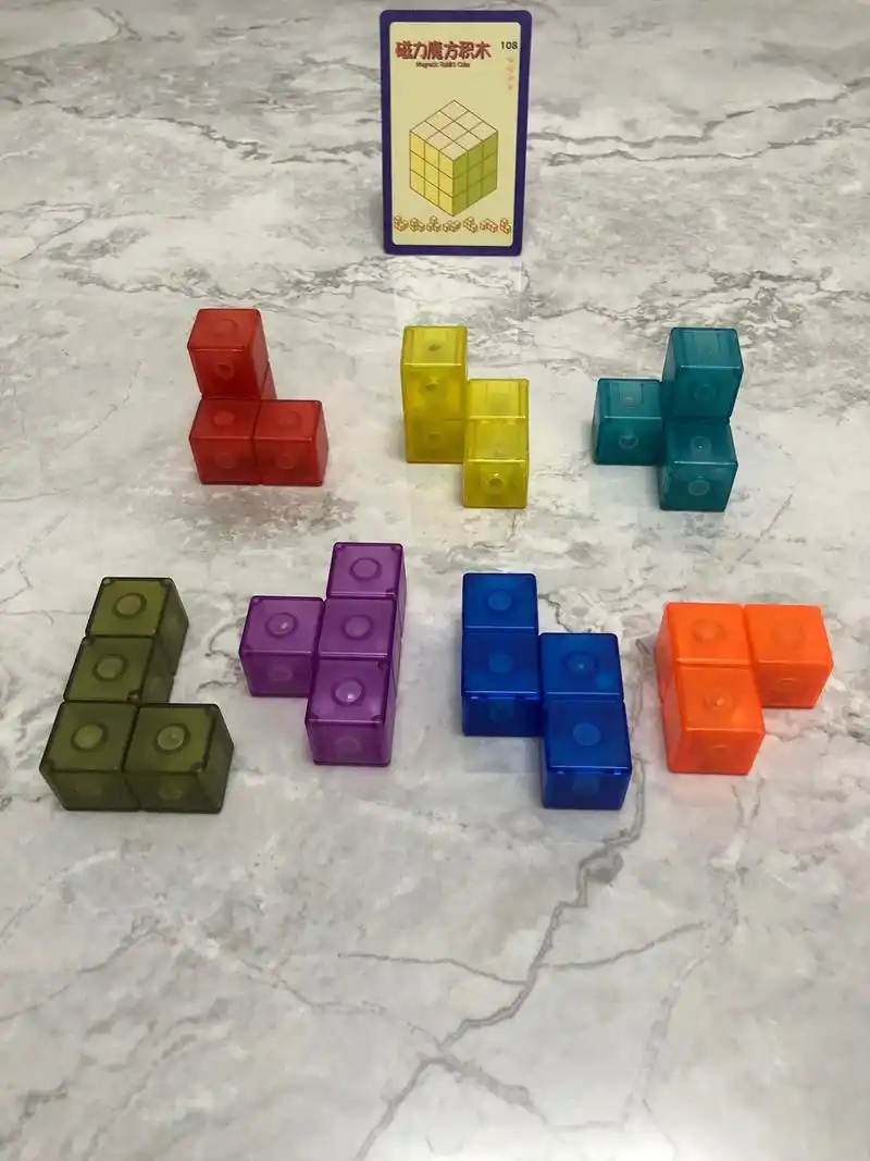 木质鲁班积木索玛立方体魔方块儿童拼装益智玩具方块正方体教具 彩色